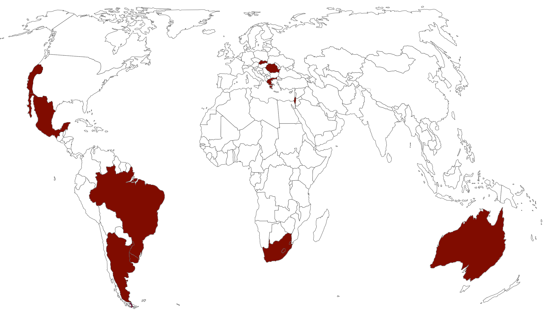 Italien, Californien, Israel, Rumänien, Slowakei, Griechenland, Südafrika, Australien, Argentinien, Urugay, Brasilien, Mexiko
