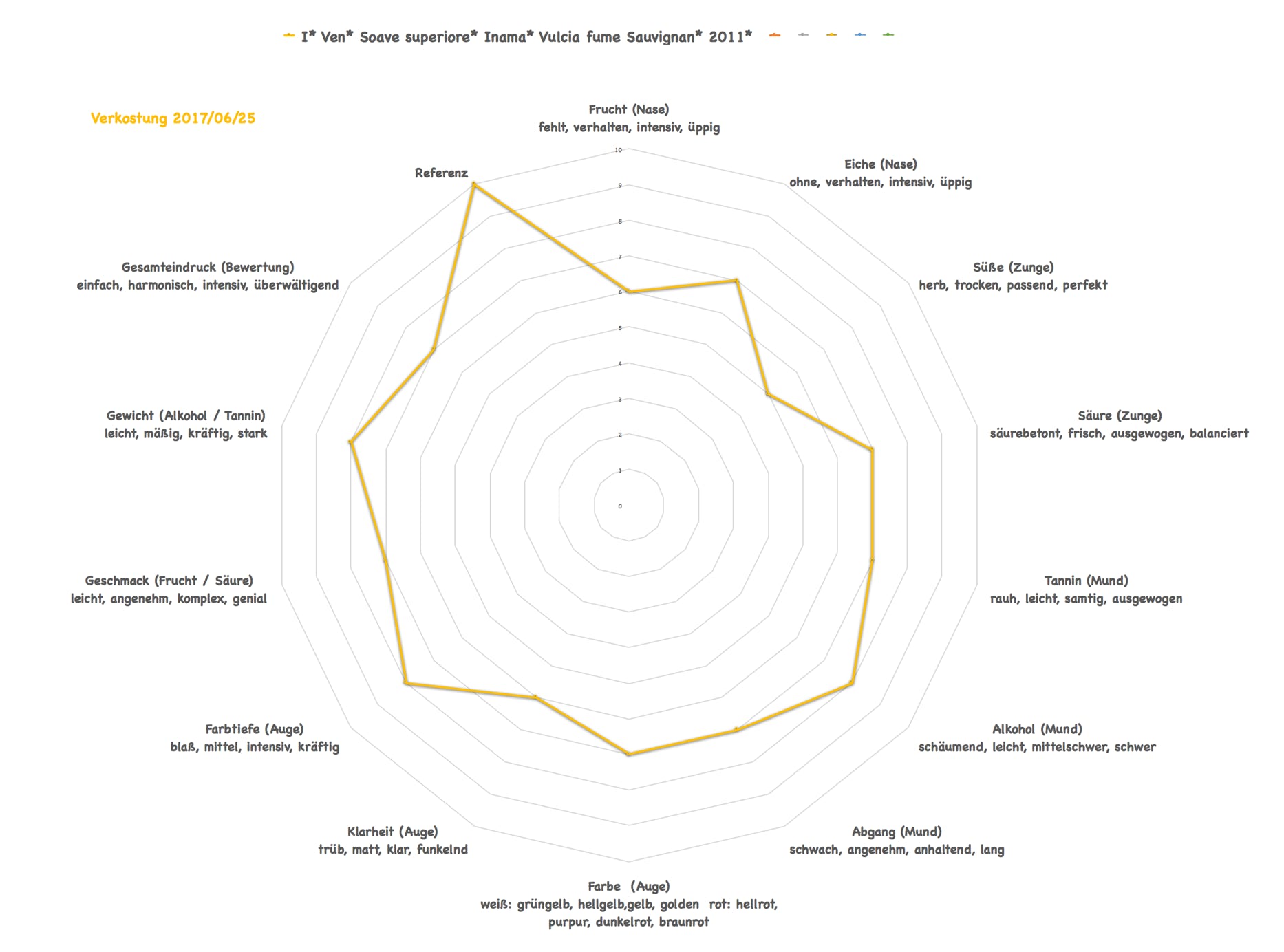 Ungewöhnlicher eher herber schwerer dunkler Weißwein mit Anklängen von geröstetm Kaffe, Vanille, tropische Früchte im Hintergrund - mit langem Abgang